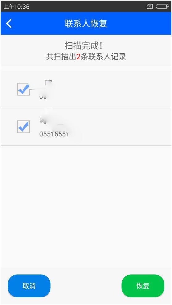 5.软件界面显示之前删除的联系人,用户可以进行勾选,再点击右下角的"恢复"按钮即可进行数据恢复。