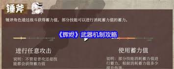 首先,辉烬武器拥有独特的能量条。每次使用武器技能会消耗一定能量,而通过普通攻击或特定场景互动可缓慢回复能量。能量的合理运用是发挥辉烬武器威力的关键。