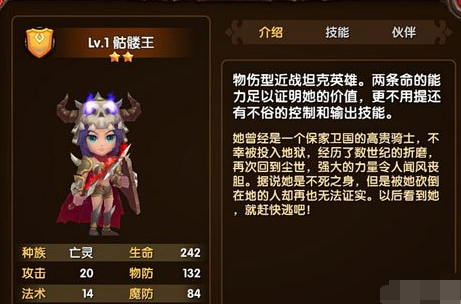 骷髅王是大众英雄,亮点就是血厚,还有光环以及物理输出都是非常给力的,还有他的成名技能复生,拥有2天命在战斗,尤其是他配合死亡骑士的时候,效果是非常的明显呀,有些玩家们喜欢用骷髅王去打敌人的后排,不过危险性大,效果也是不错的。