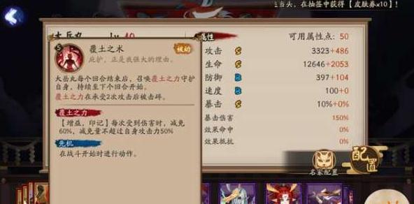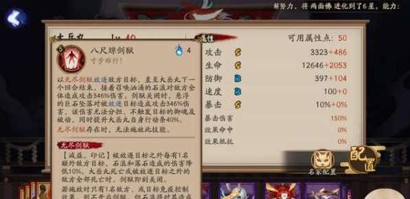 大岳丸的基础面板还是很不错的,攻击S、生命S、暴击S、防御速度都是B,防御接近400,速度100,攻击方面3323,算是很优秀的级别了。
