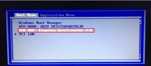 3、重启电脑,按下F12/F11/ESC等按键,会弹出一个启动项菜单,选择USB字样的项或者U盘名称,按回车键。