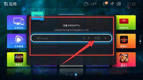 1、首先打开智能电视,在功能栏中找到【Miracast】