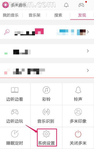 1、首先打开多米音乐,点击界面右上角的发现按钮打开。