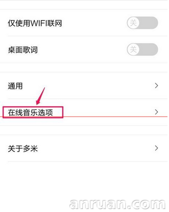 3、在设置页面中,我们选择这里的在线音乐选项进入