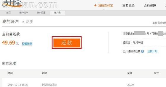 PS:花呗还支持自动还款功能,可以通过支付宝余额、余额宝、快捷借记卡自动还款。在每月10日前,请确保资金充足即可。
