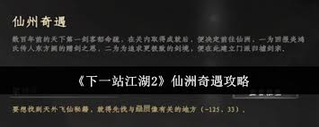 按照这些攻略,一步步探索仙洲,你就能顺利度过这场奇妙的奇遇,收获满满的惊喜与成就,在下一站江湖2的世界里留下属于自己的传奇!