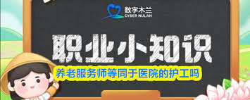 养老服务师和医院护工在工作内容、技能要求、服务对象、工作环境及职业发展等方面都存在明显差异,不能简单等同。但他们都在各自领域为保障人们健康和生活质量发挥着重要作用。