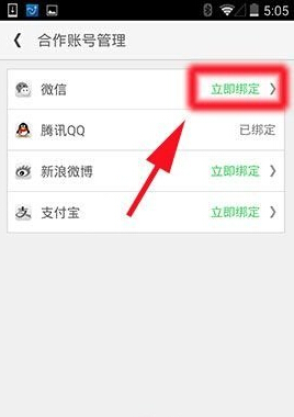 3、我们只需在微信后面点击【立即绑定】,然后把微信账号跟密码输入进去点击登陆即可!登陆点击后会出现个“授权”管理,允许就绑定成功了。