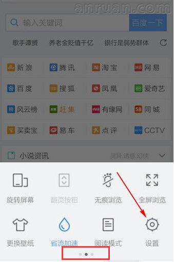 1、打开手机百度浏览器,选择底栏【菜单】,滑动到【设置】选项。