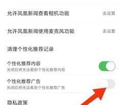 打开凤凰新闻app,进入设置页面。仔细查找是否有关于广告的相关设置选项,比如是否接收推送广告、是否显示个性化广告等,根据自己的需求进行相应调整。有些广告是根据你的浏览习惯推送的,关闭个性化推荐可能会减少这类广告的出现。