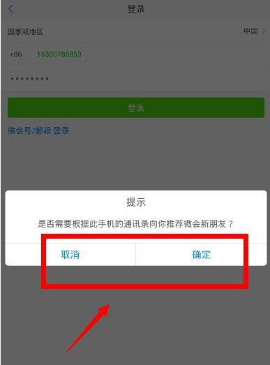 5、出现搜索通讯录,推荐好友提示,根据你的习惯,选择确定和取消