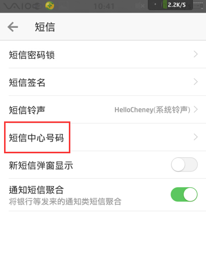 5、点击“短信中心号码”。