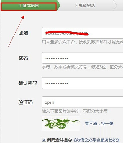 2、注册“基本信息”,邮箱和密码输进去,点“确定”;