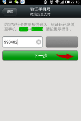 3、在验证手机号的界面,会自己识别手机验证码,选择下一步,进入设置支付密码界面