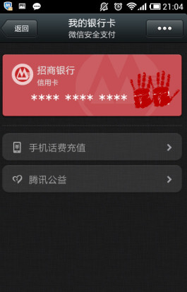 5、设置了你所添加的银行卡后,你的微信就绑定了银行卡,那么以后如果有需要微信支付将从这张卡来扣钱。这就是微信支付。