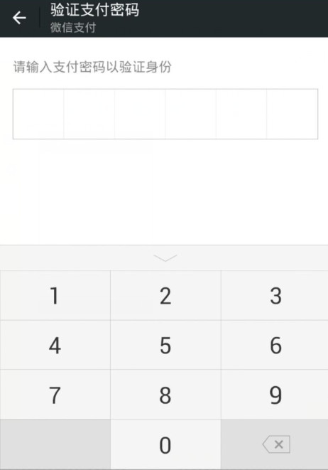6、然后会进去到验证支付密码界面,这个时候会让我们输入微信钱包支付密码,我们将自己的支付密码输入进去。