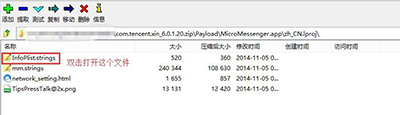 修改“CFBundleDisplayName”下面的微信名称,据称这个才是桌面上显示的名称,如下图: