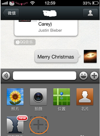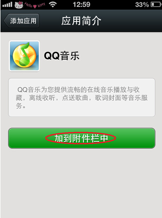 第一步,添加QQ音乐到微信附件栏中