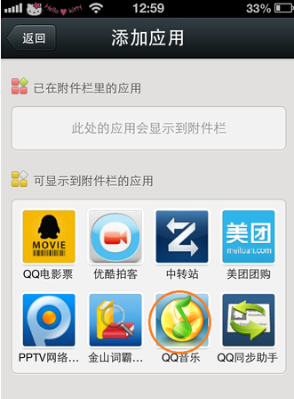 然后在添加应用窗口中,我们选择“QQ音乐”,如下图所示