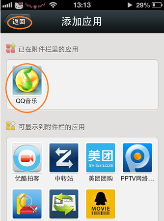 这时,你会见到“QQ音乐”已经在你的应用中,然后点一下左上角的“返回”,如下图所示
