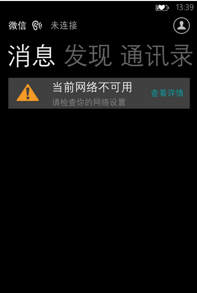 3、打开微信,即可发现微信提示 当前网络不可用 ,表示网络已经断开了;