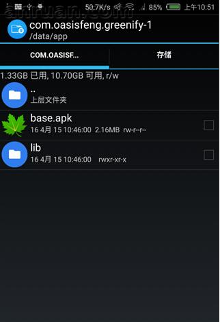 2、然后,返回到data/app-lib路径下,利用管理器的搜索功能:【com.oasisfeng.greenify】这样关键字段的lib数据文件删除干净并且重启手机进行安装尝试。
