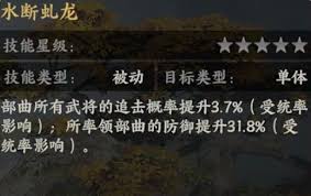 优先升级黄盖的主动技能,提升其伤害输出与控制效果。比如“苦肉计”,不仅能对敌方造成可观伤害,还有几率使敌人陷入混乱状态,打乱敌方阵型。随着等级提升,该技能的伤害和控制几率都会增加。同时,被动技能也不能忽视,像“铁壁”可大幅提升自身防御,要及时升级强化生存能力。