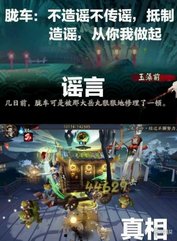 阴阳师在近期的大岳丸集结活动中,由于大岳丸被削弱而造成的剧情本打不过胧车因此无法完成集结活动,让许多小伙伴哭笑不得。甚至因此阴阳师还在凌晨爬到了微博热搜第四,着实火了一把。接下来就让我们来看一看本次BUG之后玩家们自由发挥制作的沙雕图吧。