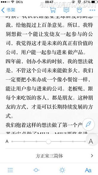7、阅读时点击一下,可以改字体及文字大小。在晚上看书的时候还可以使用夜间模式,当然也可以明亮度及书籍目录。