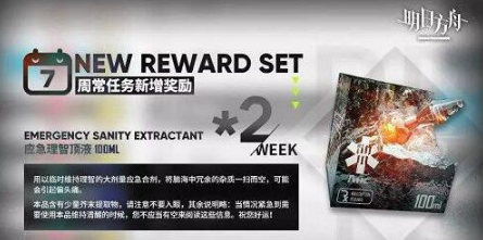 2.周常任务奖励2瓶【应急理智顶液】(单瓶可恢复100理智)
