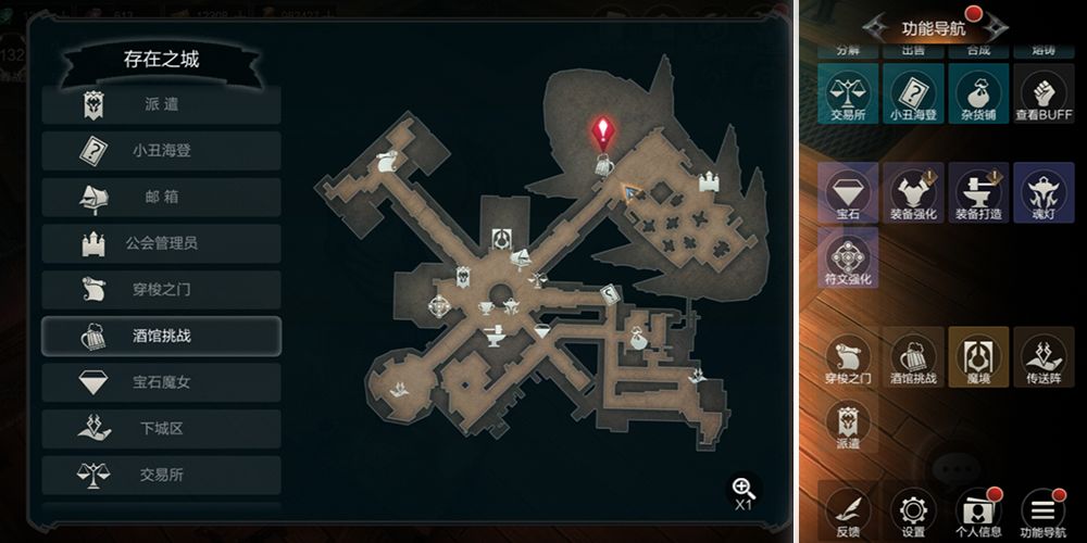 酒馆挑战入口在存在之城地图的东北方向,具体位置可以点击右上角小地图进行查找喔。