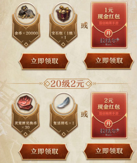 3,完成对应等级,可领取对应奖励的礼包或现金红包,先到先得。