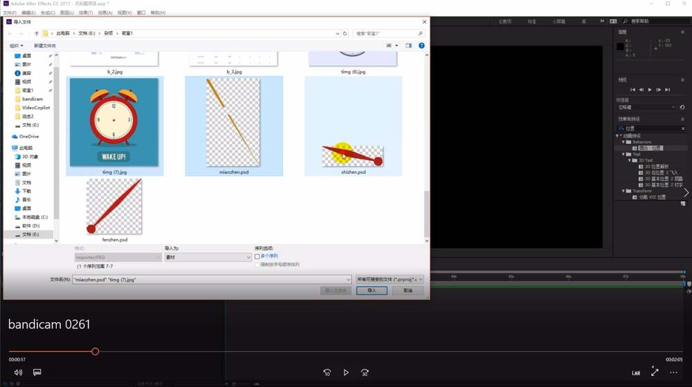 打开ae软件,接着新建合成并导入我们需要的素材,这里有一个钟面,还有三个时针。