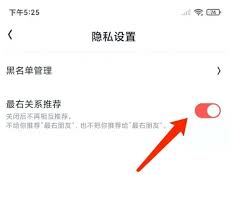 点击进入该设置项后,会看到当前的推荐状态,一般会显示为开启状态。此时,将开关切换为关闭状态。当开关颜色发生变化或者出现相应提示时,就表示已经成功关闭了最右关闭推荐。