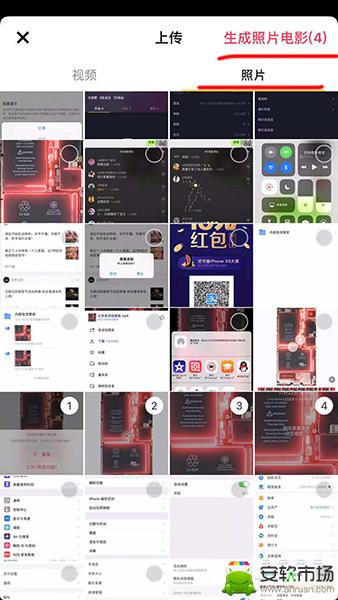 2、选择【照片】然后确定自己需要的照片,点击右上角的【生成照片电影】;