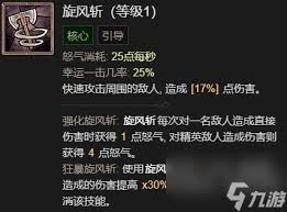 以增强旋风斩为核心进行加点。先投入点数提升旋风斩的伤害、范围和持续时间等关键属性。适当分配点数到生存天赋上,如增加生命值、护甲值等,确保在战斗中有一定的生存能力。