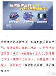 周年限定的武器皮肤绝对是一大亮点。会有精心设计的枪械外观,比如枪身带有周年标志的涂装,或者搭配独特特效的皮肤。获取方式可能是在周年活动期间累计登录一定天数,或者参与特殊的对战活动,达到相应条件即可领取心仪的武器皮肤,让你的武器在战场上更加夺目。
