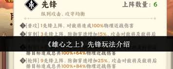 先锋在“雄心之上”中起着至关重要的开场作用。要明确其快速抢占先机、吸引敌方火力并为队友创造输出环境的定位。熟悉先锋的技能机制,比如初始的快速冲锋技能,能迅速拉近与敌人的距离,这是先手开团的关键。合理运用技能冷却时间,把握好每次冲锋的时机,尽量在敌方后排站位分散或技能准备未就绪时发起冲锋,打乱敌方阵型。