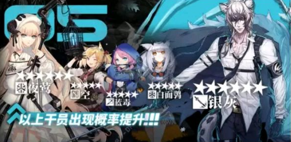 寻访说明:常驻标准寻访更新,该寻访中以下干员出现率上升;六星银灰 / 夜莺(占6★出率的50%)