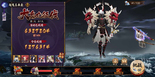 超鬼王征伐是限时挑战BOSS,取每日最高伤害值累积,以活动结束时最终伤害排名来发放奖励。全服累积伤害到对应档位、每日第一次挑战也有奖励发放,建议每天征伐一次。