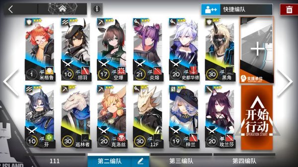 如上图,阵容构成方面,技能为冲锋号令和击杀回费的先锋各带一名,狙击带单体两名群体一名,术士带单体一名群体两名,普攻减速的辅助带一名,阻挡为3的重装带两名,高攻近卫带一名。参考攻略的博士请根据自己的box,自行替换为对应的上位干员即可。本攻略不需要医疗干员。