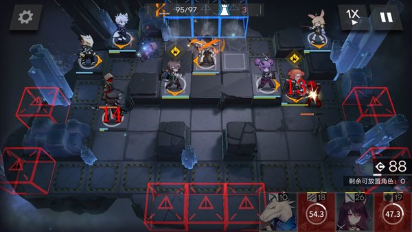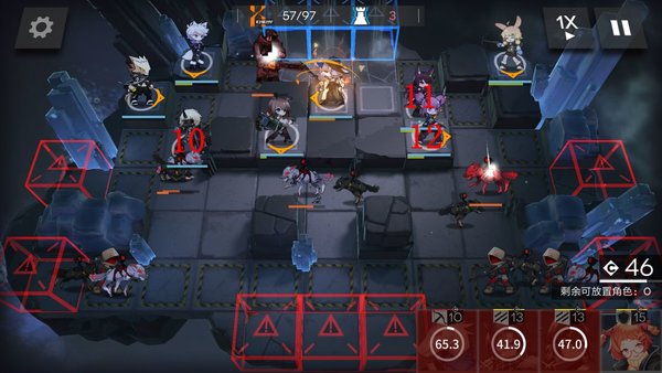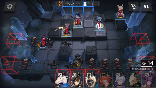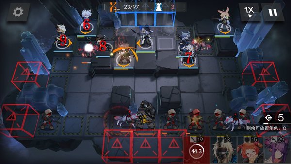 在8点部署一名先锋,并按照上图顺序依次补齐679点的术士和狙击。这里注意7点部署的狙击攻击范围越大,便可提前击杀更多下方伫立的弩手组长,减轻之后重装的压力。