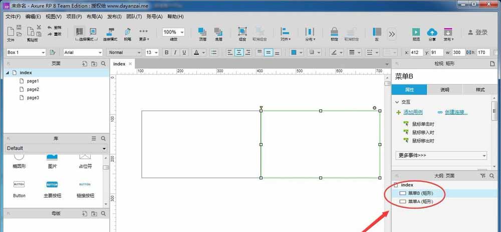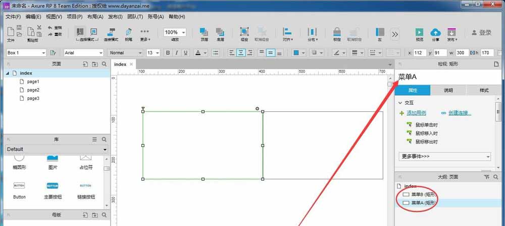 新增几个元件,可以在右侧“大纲。页面”看到已命名的元件,以元件的名称来显示;