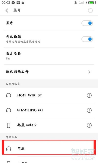 五、最后在蓝牙界面的“可用设备”中,找到苹果耳机的“设备名称”,此时已经显示耳机可用的状态,点击进行连接后安卓手机就能使用苹果的蓝牙耳机了。