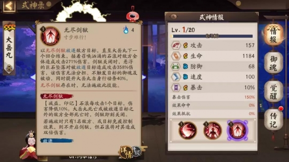 但是自身速度过慢(初始100),无尽剑狱无法连续施放,耗火过高(4点),这几点很有可能会限制大岳丸的发挥,因此在PVP当中更加考验目标的选择以及策略上的思考。