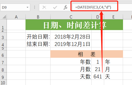 计算两个时间点之间的时间差,可以使用datedif函数。它的语法是datedif(start_date, end_date, unit)。其中start_date是起始日期,end_date是结束日期,unit表示要返回的时间差单位。比如要计算两个日期之间的天数差,unit就设为“d”。
