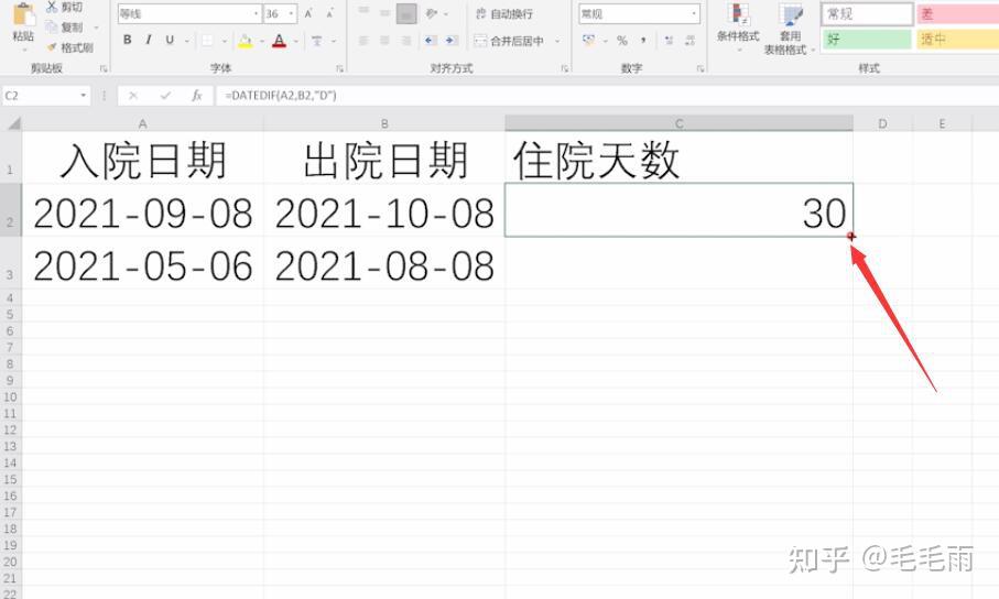 假设起始日期在a1单元格,结束日期在b1单元格,在其他单元格输入公式“=datedif(a1,b1,"d")”,就能快速得出天数差。