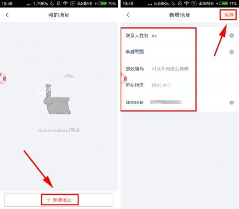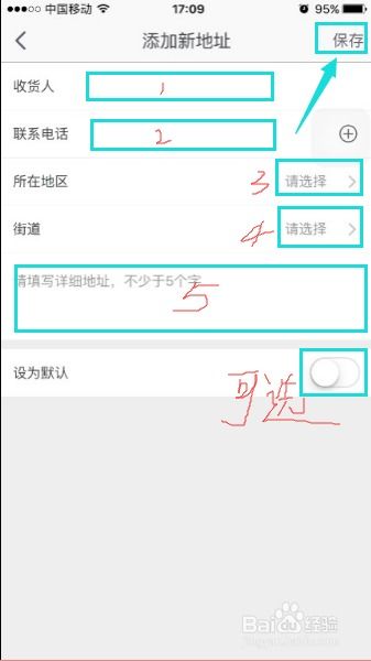 3. 填写收货人信息:在弹出的新增收货地址页面中,依次填写收件人姓名、联系电话、所在地区、详细地址等信息。确保信息准确无误后,点击“保存”。
