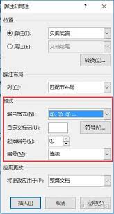1. 编号格式:如果想要更改脚注或尾注的编号格式,比如改为罗马数字等,可以在“引用”选项卡的“脚注”组中,点击“脚注和尾注”对话框启动器。在弹出的对话框中,选择“编号格式”下拉菜单进行更改。