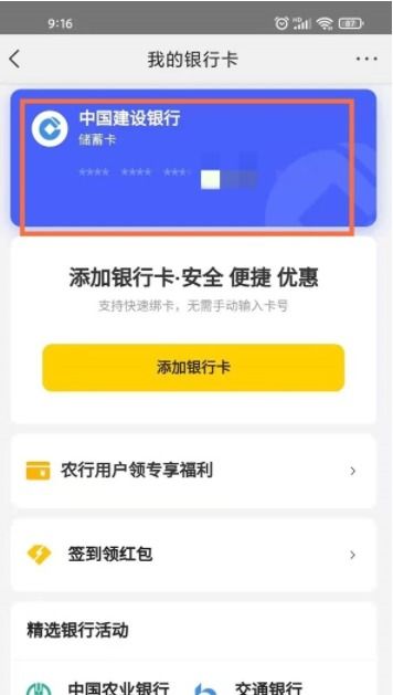 此时,你会进入已绑定银行卡的页面,这里展示了你在哈啰app上绑定的所有银行卡信息。